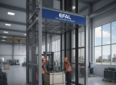 Binalarda veya endüstriyel tesislerde ağır ve hacimli malzemelerin katlar arasında dikey olarak hızlı ve güvenli şekilde taşınması için tasarlanmış yüksek taşıma kapasiteli sistemdir.